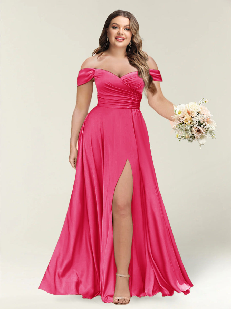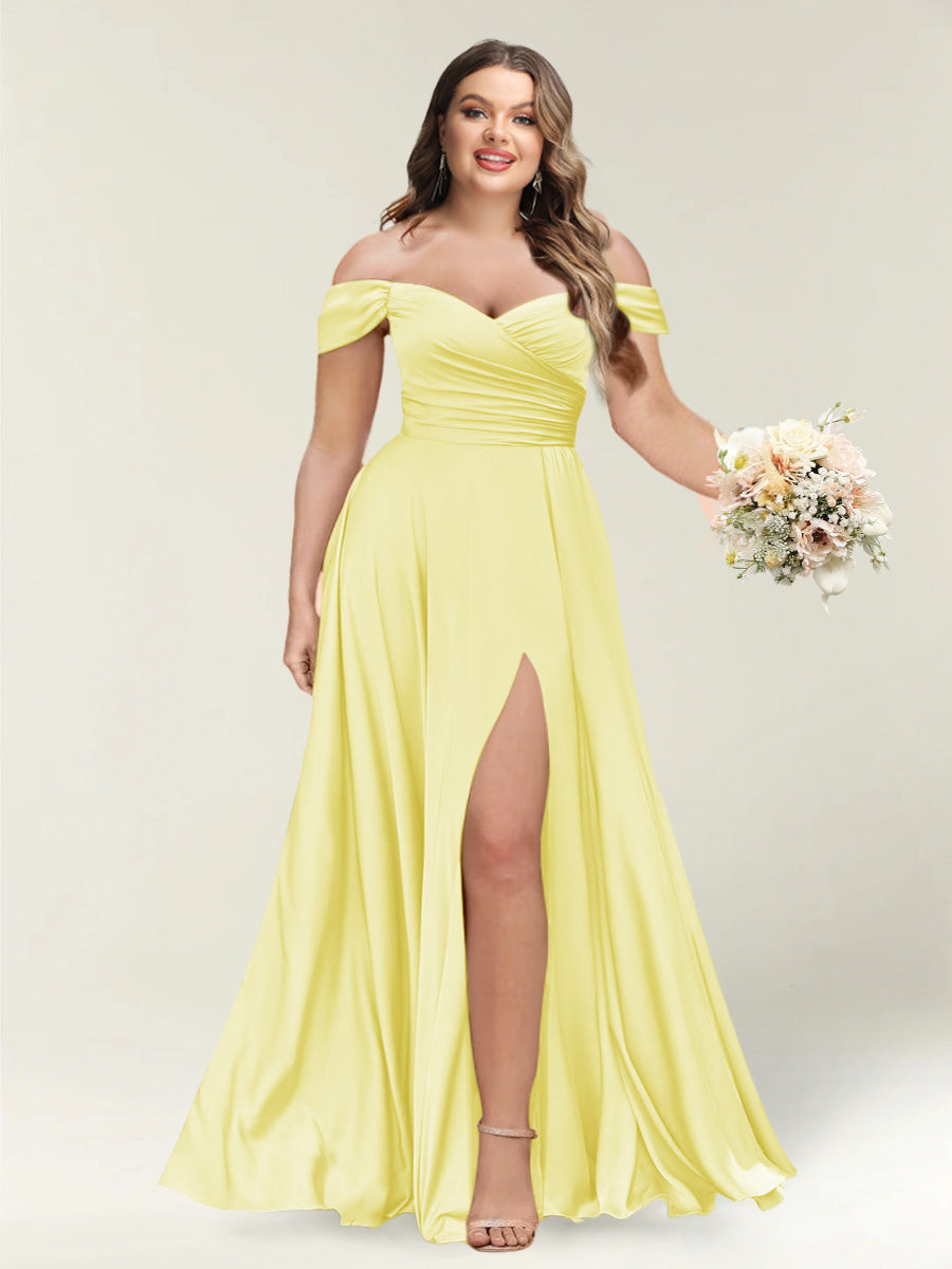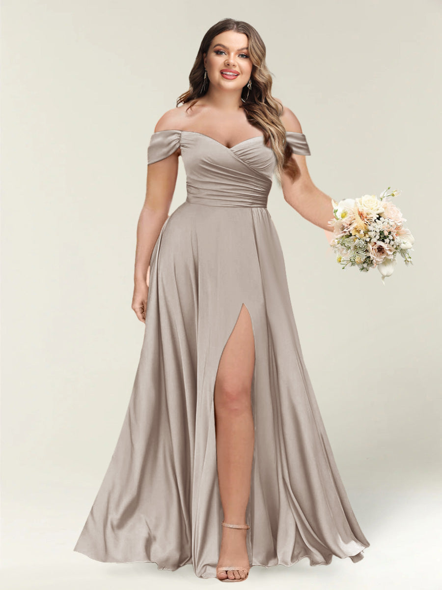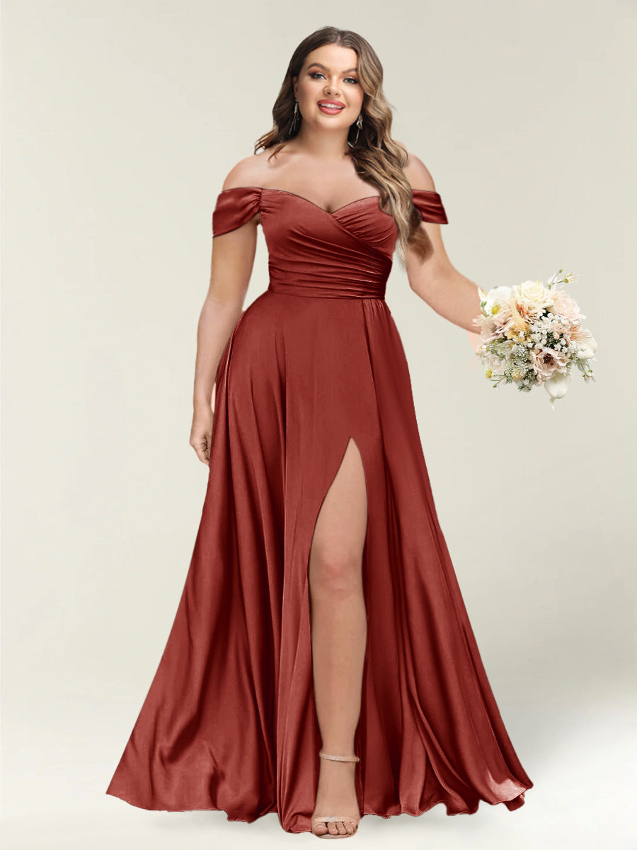#Kaeln 11010009P Ligne A/Princesse Une Épaule Sans Manches Long Robes de Demoiselle d'Honneur Grande Taille avec Côté Divisé