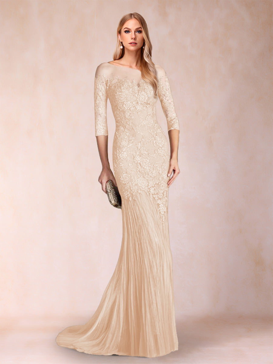 #Miri 12010349 Robe de Mère de la Mariée à Manches 3/4 Style Sirène/Trompette avec Appliques