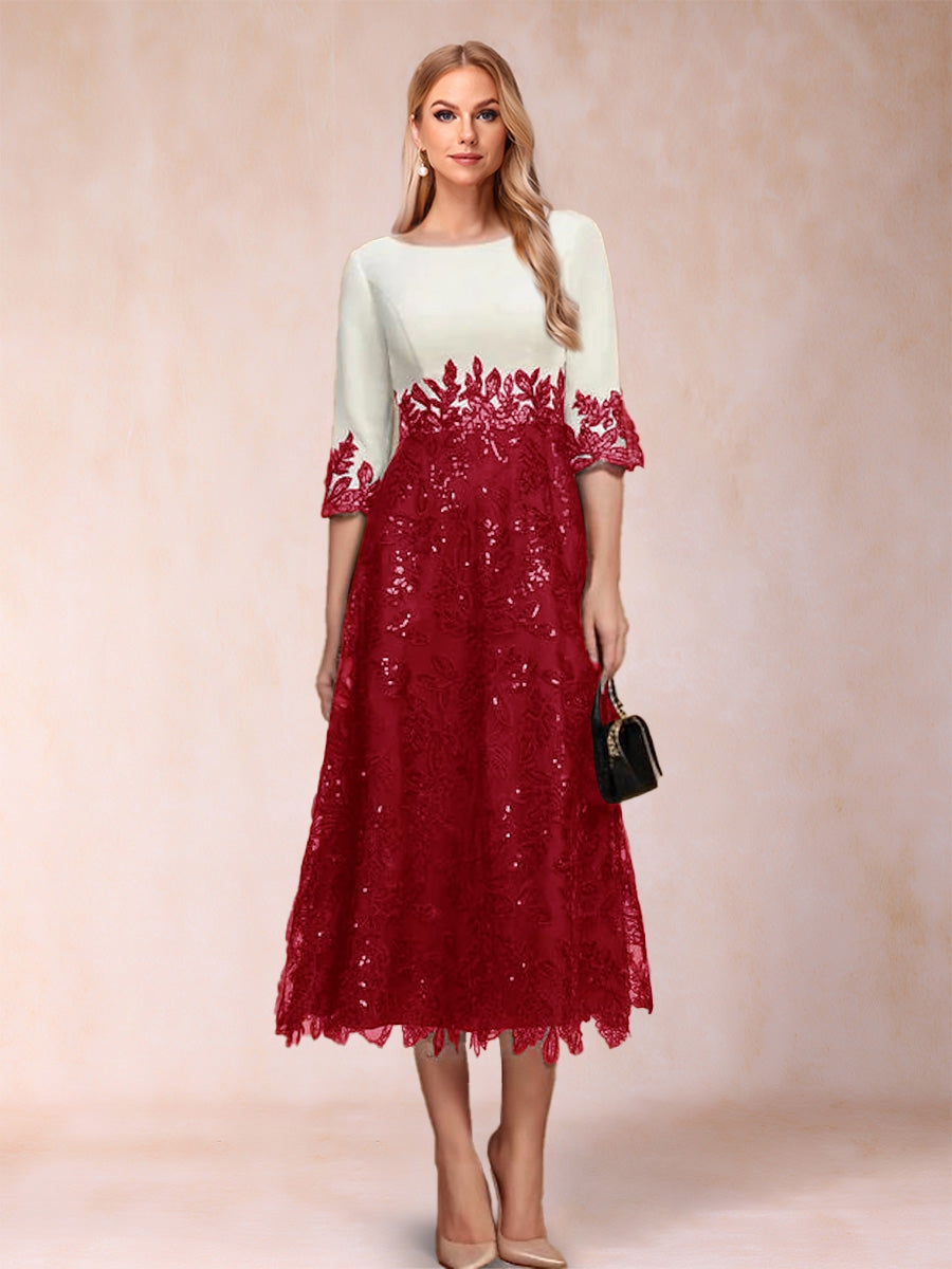 #Katira 12010983 Robe de Mère de la Mariée Coupe A-Line/Princesse, Manches Mi-Longues, Décolleté Plongeant avec Appliques