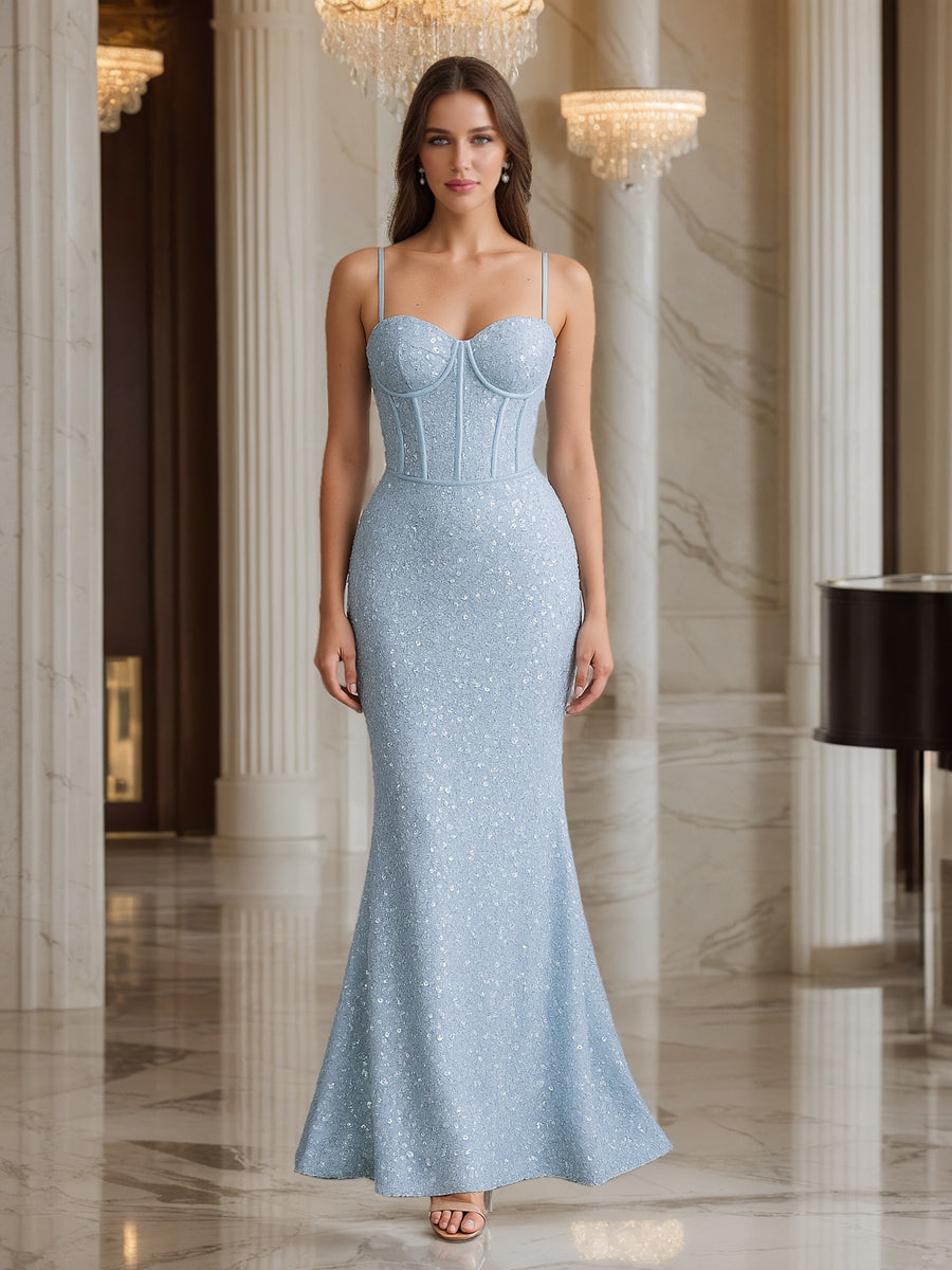 #Hulda 12011130 Robe de Bal Longue à Bretelles Style Sirène et Corset à Sequins et Traîne