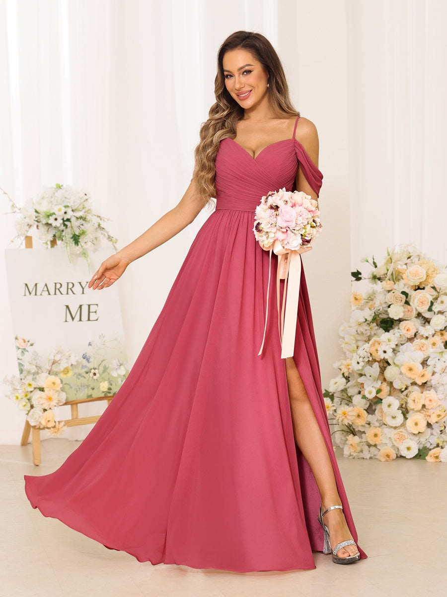 #Adelaide 99061743 Ligne A/Princessee Bretelles spaghetti Longues fendue sur le côté Robes de demoiselle d'honneur