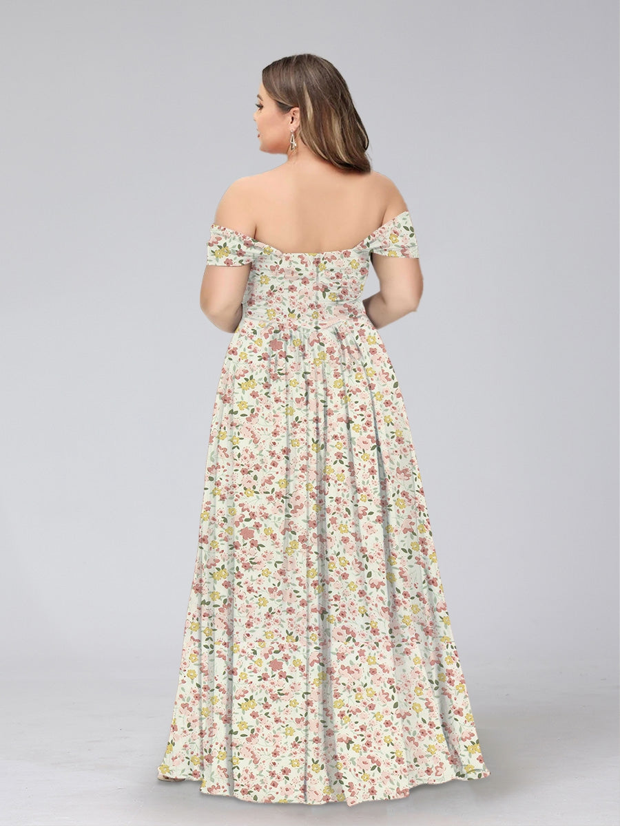 #Artificial 99091003 Robe de Demoiselled'Honneur Grande Taille, Coupe Trapèze/Princesse, Épaules Dénudées, Manches Courtes, Fendue Sur le Côté