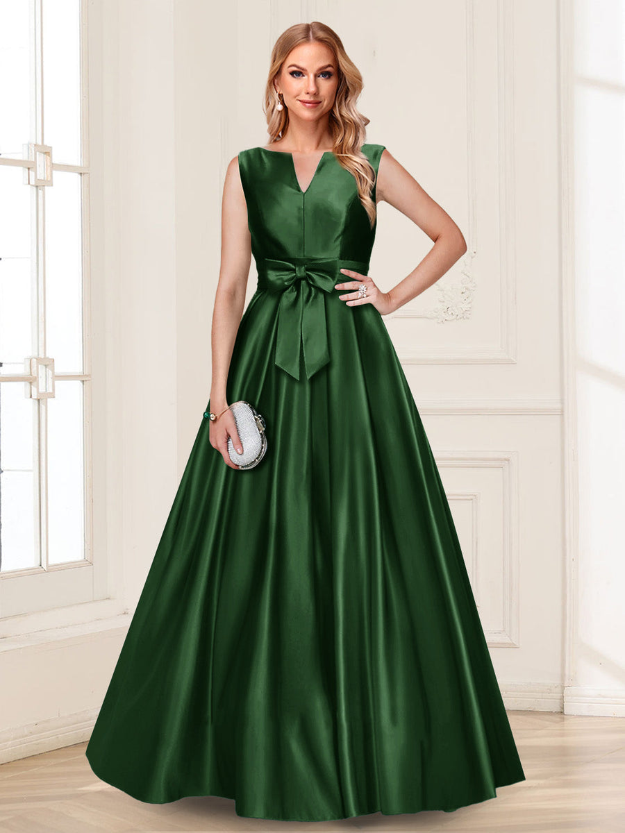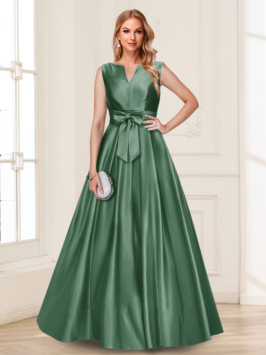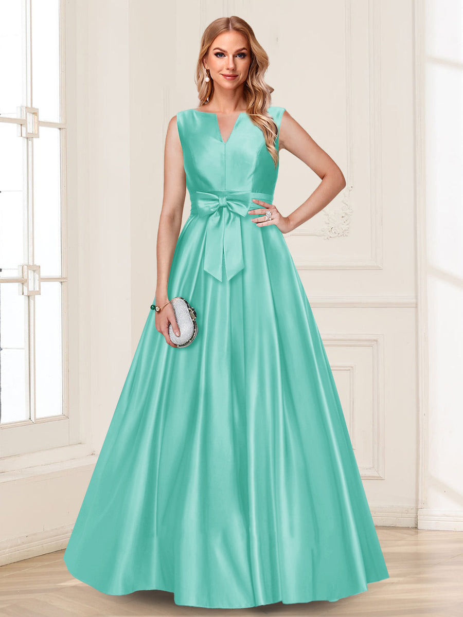 #Luna A12010413 Robe de Mère de la Mariée Coupe A-Line/Princesse, Col en V, Sans Manches avec Nœud