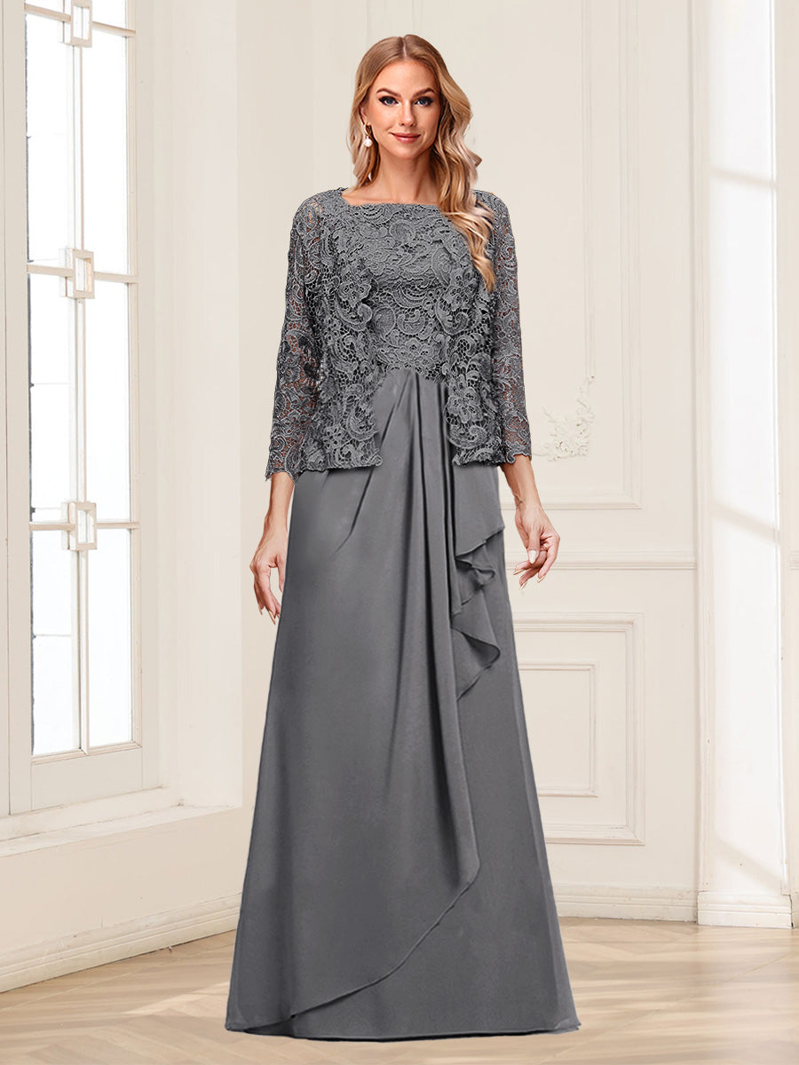 #Lysandra A22441666 Robe Mère de la Mariée 2 Pièces en Mousseline de Soie et Dentelle, Col Carré, Manches 3/4 avec Appliques et Veste